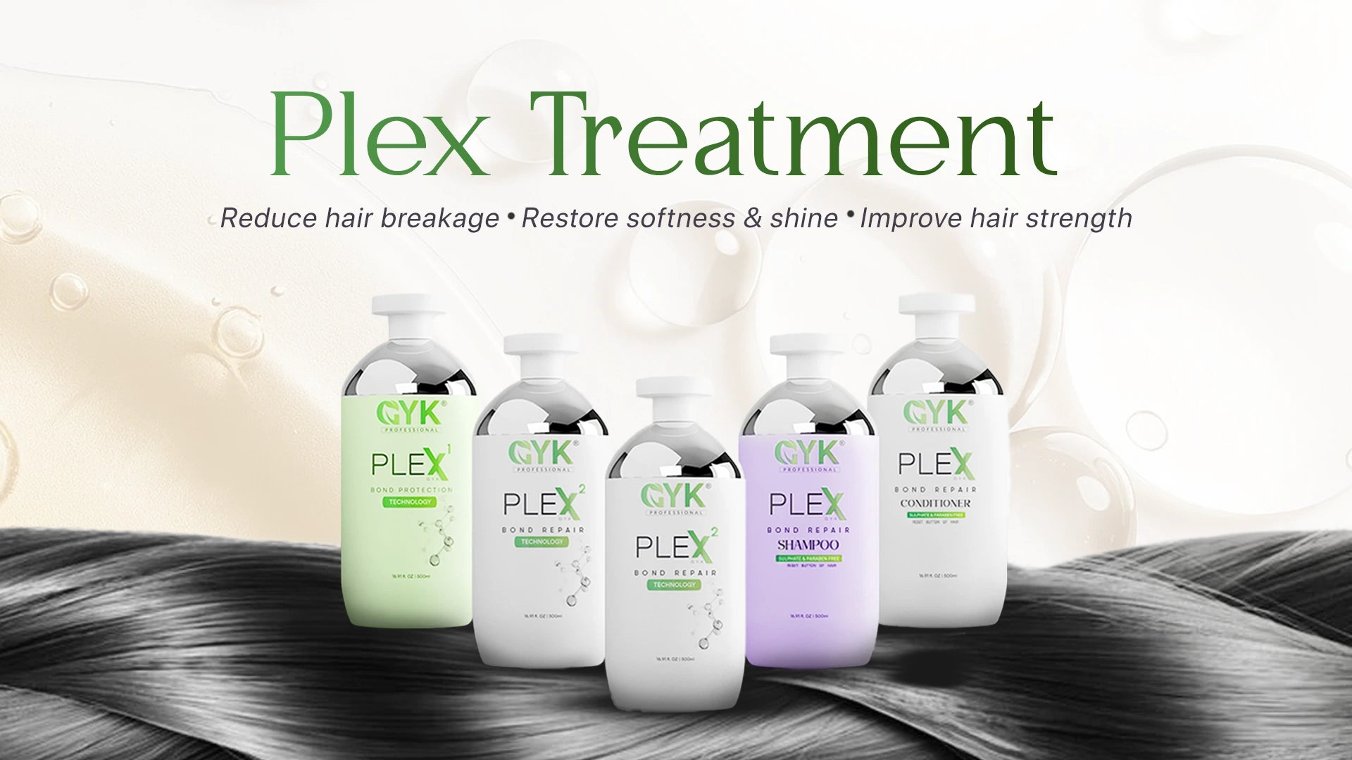 GYK Professional PLEX Bond Repair System Combo – 500ml (No.1 + No.2 x2 + Shampoo + Conditioner)